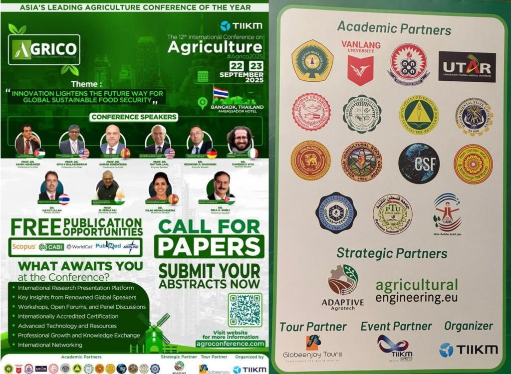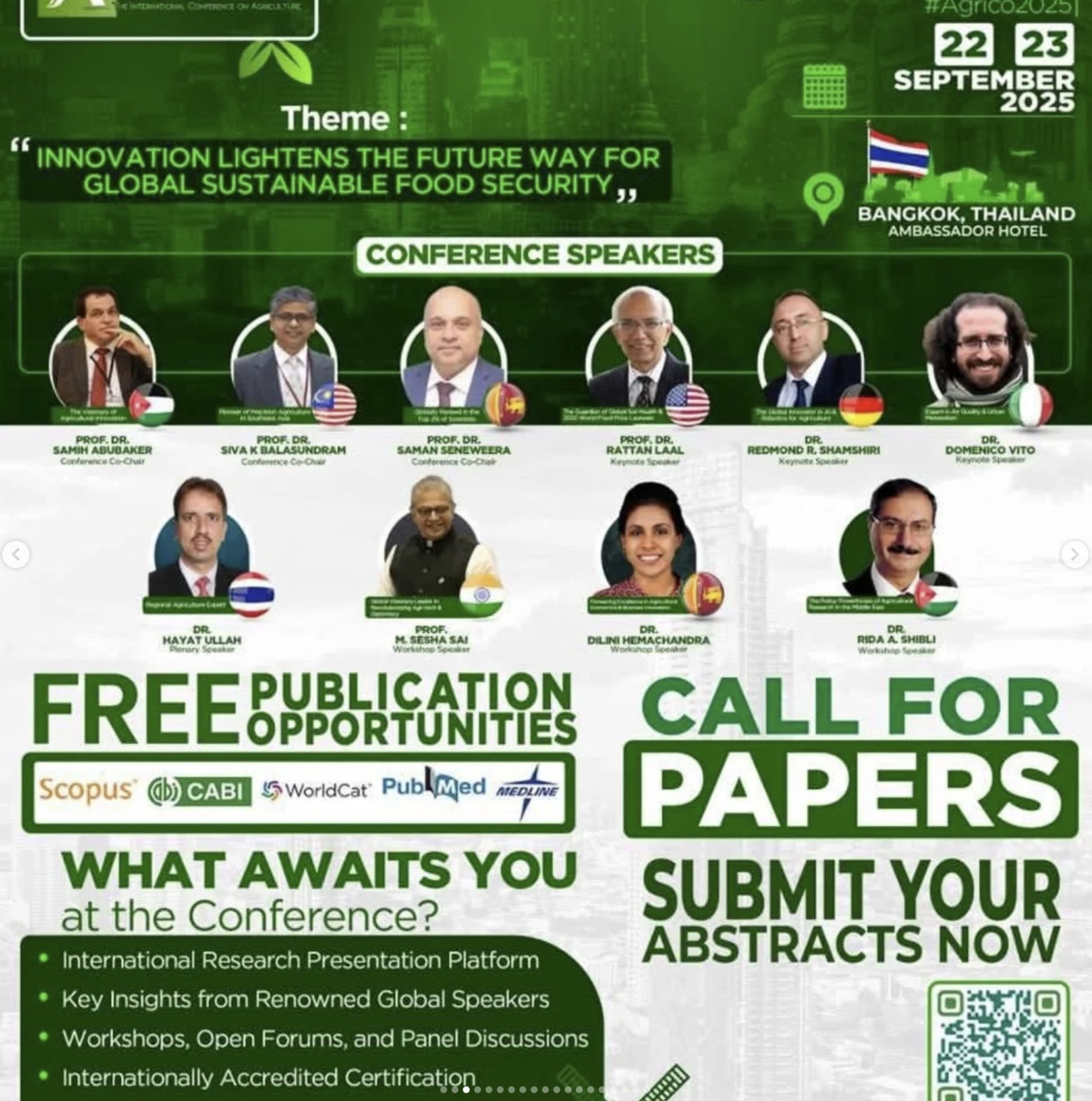 The 12th Int Conference on Agriculture 2025 (AGRICO 2025), 22nd and 23rd September in Bangkok, Thailand 1536 2048 Dr. Redmond